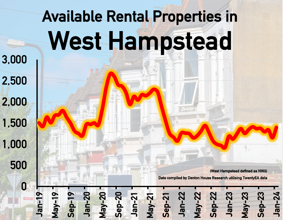 West Hampstead rents have risen by 32%, as available rental stock dwindled by 35% since 2020.